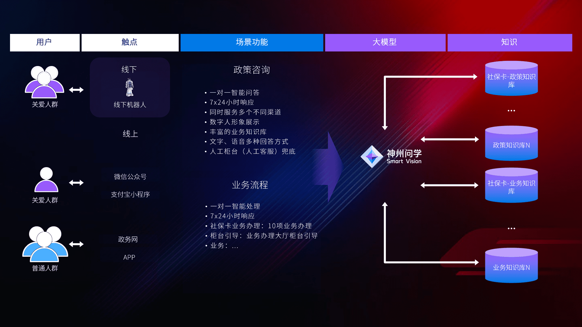 • 线上线下全覆盖:线上提供微信公众号、、支付宝小程序、、、政务网、、app多种渠道,,,,与线下机器人形成完整服务体系。。。。